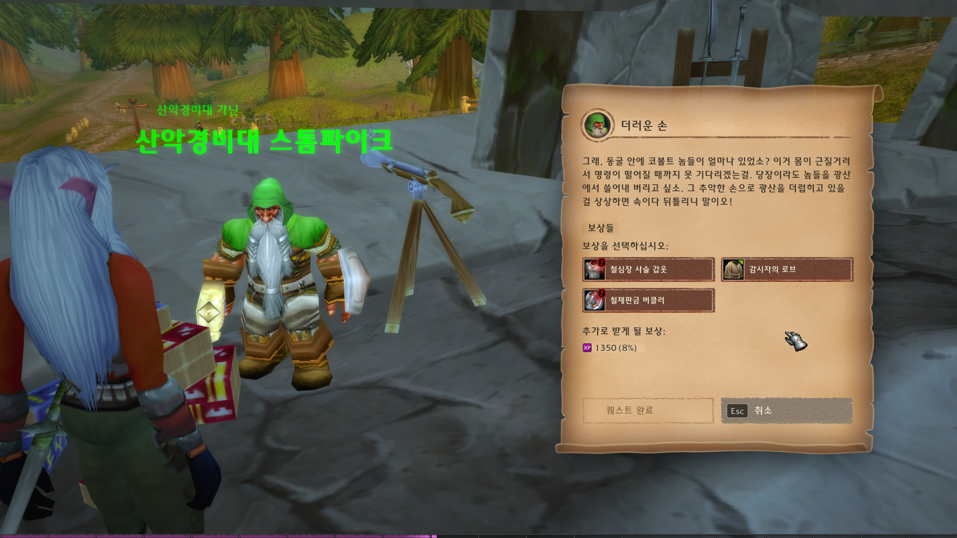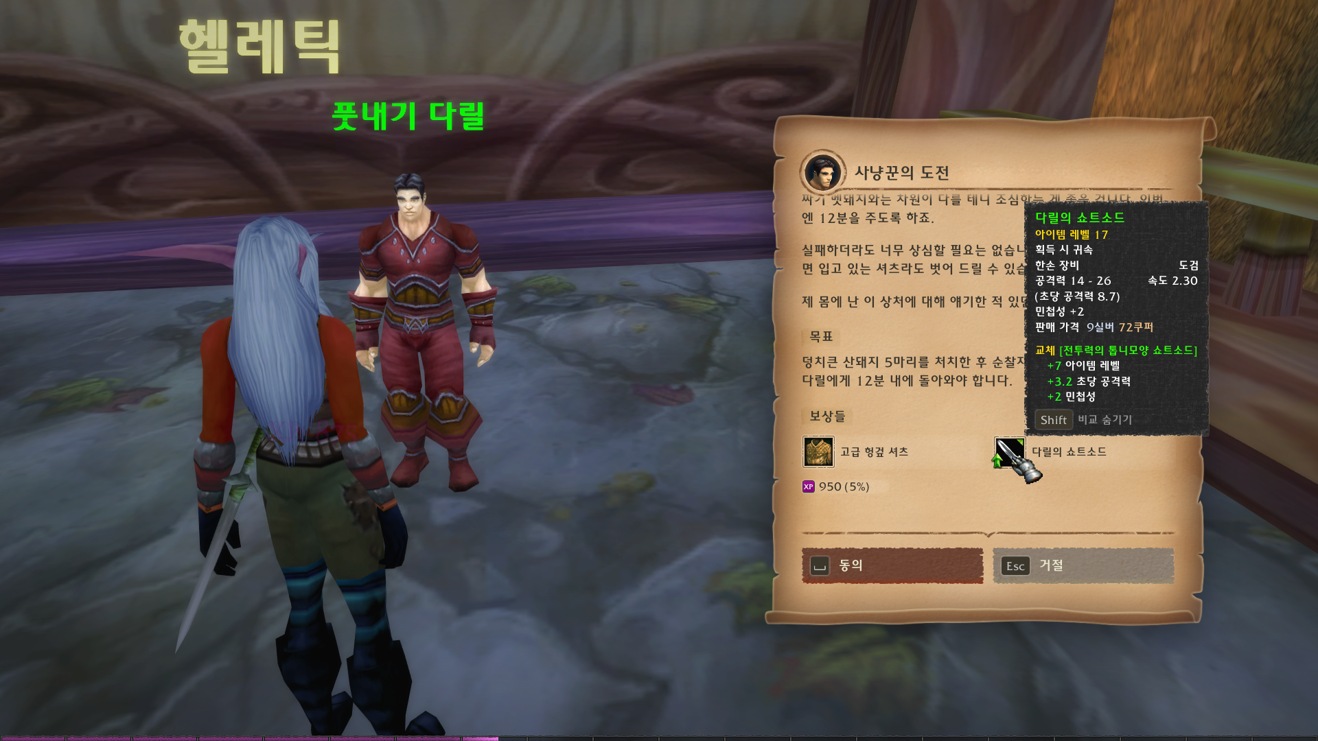 바로 옆에 npc가 주는 퀘 보상 활,총은 맛이 없다.